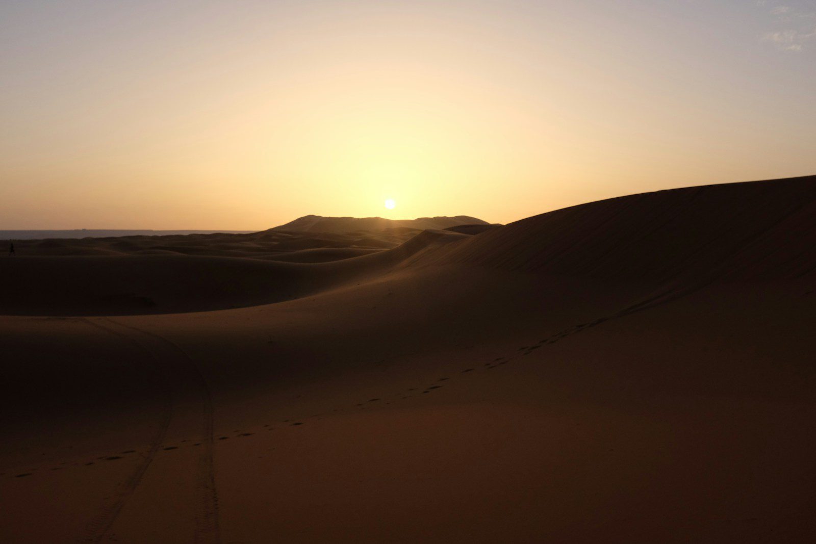 Continue towards the Sahara, passing through Erfoud, known for its fossil workshops, before arriving in Merzouga. Here, take a camel trek through the golden Erg Chebbi dunes and watch the sunset in the desert. Spend the night in a luxury desert camp, enjoying a traditional Berber dinner under the stars with live music.