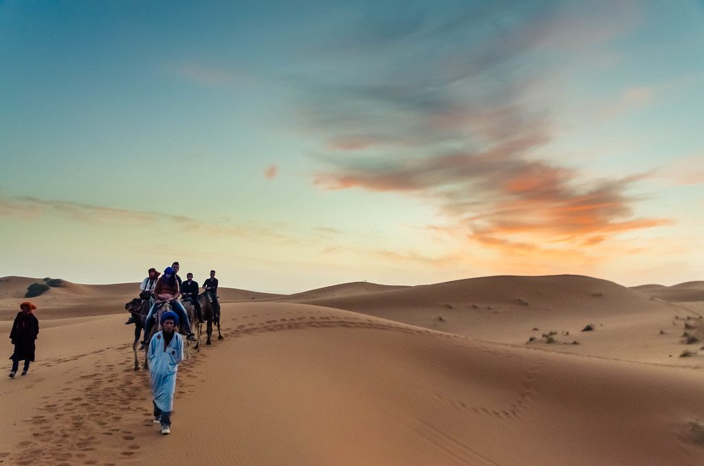 • Camel trek at sunrise and sunset in the Sahara Desert